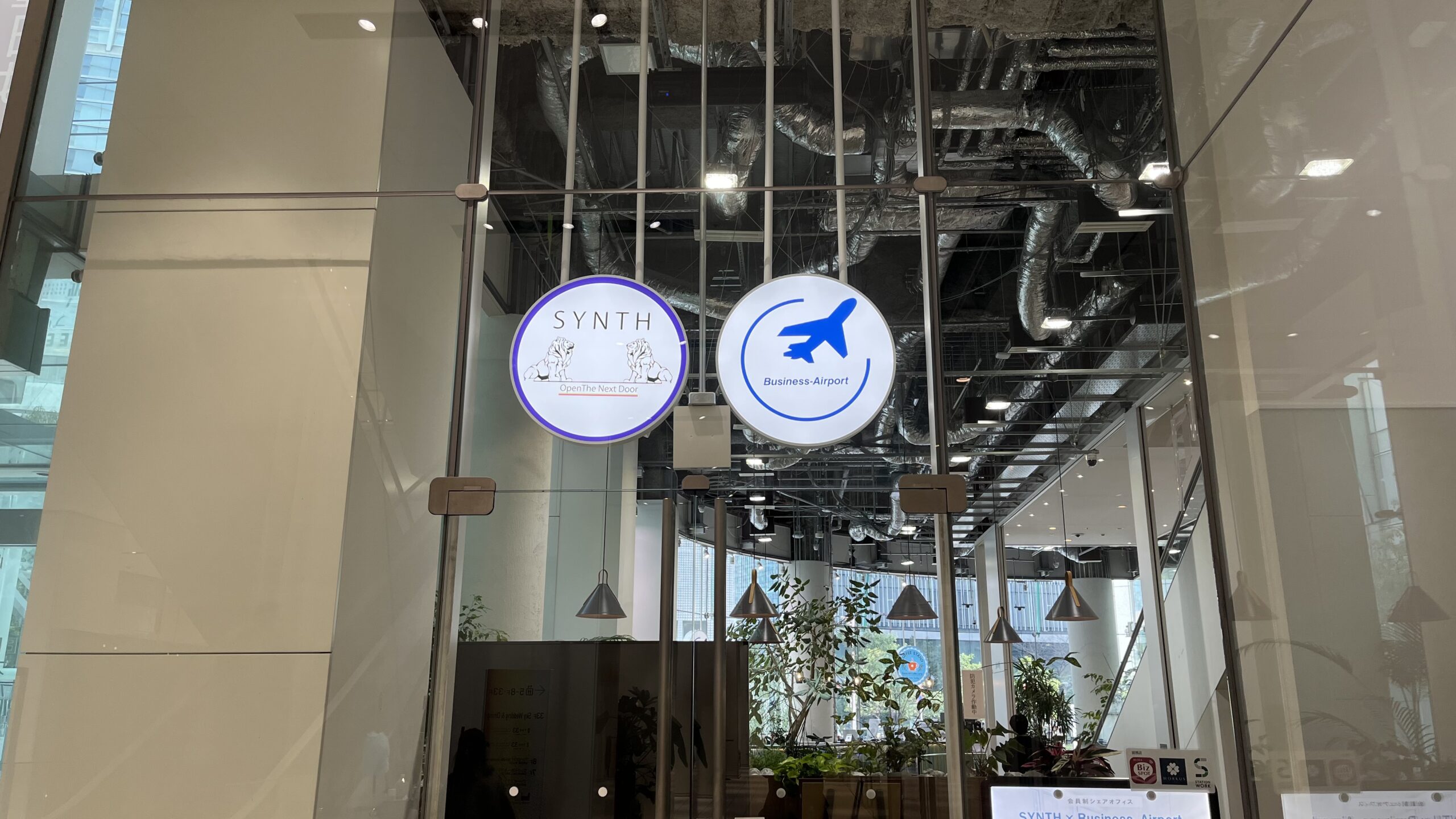 エスカレーターを降りると、正面に目的地の「SYNTH×Business-Airport 西梅田ブリーゼタワー」の入口があります。